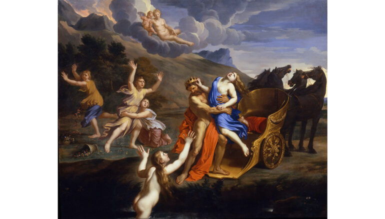 Il MitoPersefone, figlia di Demetra e di Zeus, viene rapita da Ade, che la porta agli inferi col suo carro alato, mentre raccoglie narcisi (o papaveri) in un campo [dove, in alcune versioni, perde un sandalo]. Non vedendola tornare Demetra la cerca disperata. Elios (o Ecate o Eubuleo) la avvertono del rapimento e allora vaga sulla terra munita di fiaccola alla ricerca della figlia perduta. Travestita da donna anziana e velata giunge ad Eleusi, nel regno del re Celeo, dove le viene proposto di diventare nutrice di Demofoonte, figlio del re. La solleva dalla malinconia la serva Jambe [1] con lazzi osceni e battute di spirito (secondo altre versioni a farla ridere è la panciuta Baubo col marito Dysalules, e Baubo le mostra anche il fanciullo Iacco che fa capolino tra le sue cosce come se venisse partorito in quell’istante). La regina le offre del vino ma Demetra rifiuta e prepara invece una bevanda a base d’acqua, farina e crusca di orzo, il kikeion, poi destinata agli iniziati ai suoi Misteri. Viene scoperta mentre purifica Demofoonte nel fuoco per renderlo immortale e si rivela, imponendo l’edificazione di un tempio in suo onore. Rinchiusa nel suo dolore impedisce alla terra di dare frutto finché Ermes, inviato da Zeus, non convince Ade a lasciare che Persefone torni da sua madre. Ma Ascalafo, giardiniere degli Inferi, convince Persefone a mangiare 7 chicchi di melograno [2], per cui la fanciulla dovrà tornare ogni anno nell’Ade durante i mesi invernali. Secondo altre versioni è Trittolemo, “il triplice guerriero” fratello di Eubuleo (entrambi figli di Dysaules e Baubo), a riportare Persefone sulla terra, ragione per cui Demetra istituisce i Misteri e rivela agli uomini come coltivare il grano. Trittolemo nel mondo sotterraneo è identificato con Dioniso e si parla di nozze sotterranee di Dioniso con Persefone e il fanciullo sacro Brimo, che nasce da queste nozze, è anch’esso identificato con Dioniso. Dice inoltre un frammento di Eraclito: “In verità Dioniso ed Ade sono lo stesso dio”. I misteridelle due dee avevano luogo in due diversi momenti dell’anno: nel mese di Antesterione (equinozio di primavera) avevano luogo “i piccoli misteri”, durante i quali gli iniziati venivano preparati alla successiva rivelazione e apprendevano alcuni particolari del mito di Demetra e Persefone, conseguendo la condizione di mystai. Nei piccoli misteri, dopo il sacrificio di una scrofa, gli iniziati venivano sottoposti alle prove dei quattro elementi. I “grandi misteri” si svolgevano nel mese di Boedromione (equinozio d’autunno) ed erano riservati a quelli che erano destinati ad avere la visione trasformatrice, gli epoptai. L’iniziazione aveva luogo in una stanza sotterranea del tempio detta Telesterion; gli iniziati erano detti mystagogoi [3]. Subito prima di entrare nel Telesterion veniva somministrato il kikeion e si pensa che la bevanda potesse avere un effetto allucinogeno per la presenza della segale cornuta, un fungo che infesta le spighe di orzo. Porfirio riferisce che le cerimonie eleusine si chiudevano con la pronunzia della frase “Konx om pax”. [4] I Grandi Misteri si svolgevano in questo modo: il ghenos degli Eumolpidi sceglieva il miglior sacerdote, lo hierophantes, che si occupava della “visione”, cioè della rappresentazione del rapimento di Persefone da parte di Ade e del loro matrimonio; seguiva l’annuncio della nascita di Iacco-Dioniso. I nomi dei sacerdoti che officiavano non potevano essere pronunciati, venivano incisi su tavole di bronzo o di piombo e poi affidati alle profondità del mare. Anche i portatori di fiaccola facevano parte di una stessa famiglia. Successivamente gli iniziandi marciavano verso la baia del Falero, dove si tuffavano per purificarsi, riprendendo il tuffo iniziatico di Eumolpo, eroe fondatore del culto, gettato in mare dalla sua stessa madre. Il giorno successivo aveva luogo la processione, alla quale partecipava tutta la popolazione. Gli iniziandi e gli iniziati usciti dal Telesterion mostravano gli oggetti sacri. Oggetti sacri al culto erano: