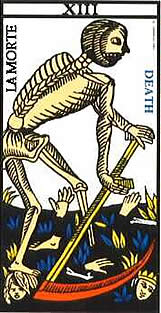 Dopo una breve introduzione riguardante la storia e le origini mitiche dei Tarocchi, ci soffermeremo brevemente sul significato alchemico di alcune lame degli arcani maggiori: il Bagatto, il Matto, gli Amanti e la Morte. IntroduzioneIl mazzo dei Tarocchi è costituito da 78 carte, 56 carte suddivise in quattro semi (ai mazzi di 52 carte noti in precedenza vennero aggiunte le quattro regine) e 22 Arcani Maggiori: (il Matto, il Bagatto, la Papessa, l’Imperatrice, l’Imperatore, il Papa, gli Amanti, il Carro, la Giustizia, l’Eremita, la Ruota della Fortuna, la Forza, l’Appeso, la Morte, la Temperanza, il Diavolo, la Torre, la Stella, la Luna, il Sole, l’Angelo, il Mondo). Eruditi ed esoteristi circondarono la nascita di questo gioco con un romantico alone di leggenda. Alla fine del 700′ Court De Gebelin riteneva i 22 arcani maggiori un libro sapienziale egizio “…l’unico sopravvissuto alla distruzione delle biblioteche di quella civiltà…” e faceva derivare il termine tarocchi dall’egiziano antico tar – rog : “il sentiero Reale della vita”. Questa tesi fu ripresa nell’800 da Eliphas Levi , Etteila, Postel e Papus i quali costruirono complicati sistemi di corrispondenze astrologiche, alfabetiche, numeriche e simboliche. Alcuni sostennero che l’autore del libro era Ermete Trismegisto o il dio egizio Toth, altri che i tarocchi fossero il risultato di una riunione tra saggi provenienti da tutta la terra, accordatisi per affidare alle illustrazioni degli arcani maggiori i segreti del cielo e della terra, della vita e della morte. In particolare i tarocchi furono accostati a uno dei testi fondamentali della Cabala, il Sepher Yezirath o libro della Formazione, un libo attribuito dai cabalisti allo stesso Abramo, che avrebbe contenuto la scienza necessaria per creare e distruggere il mondo. Le ventidue lettere dell’alfabeto ebraico, secondo il libro, contengono il potere dei dieci princìpi formatori di cui Dio si servì per creare l’universo, e corrispondono ai dodici segni dello zodiaco, alle varie parti del corpo umano e ai principali fenomeni naturali, mentre i quattro semi [denari (terra), coppe (acqua), spade (aria) e bastoni (fuoco)] rimandano ai quattro elementi. Le ventidue lame degli arcani maggiori, più che uno strumento di divinazione, diventavano così un mezzo per collegare microcosmo e macrocosmo, una chiave per realizzare il dominio dell’uomo sulle cose visibili e invisibili. Per ciò che riguarda la realtà storica, le carte da gioco vennero introdotte in Spagna, provenienti dal mondo islamico e poi nel resto d’Europa nel 1370 circa. Il primo mazzo conosciuto di carte, costituito da 56 carte suddivise in 4 semi, 14 per seme, è arabo. Le prime tracce dei Tarocchi veri e propri, invece, risalgono alla prima metà del XV secolo, nell’Italia del nord, (inizialmente le carte da gioco erano 52 e le quattro regine vennero aggiunte solo in un secondo momento) e quindi si ritiene che l’inventore di questo gioco sia stato italiano. Il gioco conobbe diverse varianti e, tra il ‘400 e il ‘500, si diffuse praticamente presso tutte le corti europee. Venne praticato soprattutto dall’aristocrazia e fu poco diffuso tra le classi popolari. Il nome con cui i tarocchi erano originariamente noti era “Trionfi”. I cosiddetti Trionfi erano uno dei passatempi preferiti dalle corti rinascimentali italiane: venivano allestiti cortei trionfali con carri addobbati di figure derivate dalla mitologia classica o con astrazioni personificate dei vizi e delle virtù, simili a quelle che sfilano ancora oggi nelle strade durante il Carnevale. Un elemento ricorrente nei Trionfi rinascimentali è che ognuna di queste astrazioni personificate trionfa, sconfiggendola, sulla precedente. Ritroviamo questa idea nel poema petrarchesco “i Trionfi”, nel quale l’amore trionfa sugli dei e sugli uomini, la castità sull’amore, la morte sulla castità, la fama sulla morte, il tempo sulla fama e l’eternità sul tempo. Il nome “Tarocchi”, di etimologia incerta, sostituì il termine “Trionfi” a partire dal 1516 e il termine Trionfi venne a designare, anziché l’intero mazzo di carte, solo i 22 Arcani Maggiori. Senza dubbio il mazzo dei tarocchi era collegato al calendario annuale: 52 sono le settimane nell’anno, i quattro semi corrispondono alle 4 stagioni, le 13 carte di ogni seme alle 13 lunazioni dell’anno, la somma dei punti delle carte fa 364 a cui si devono aggiungere una o due “matte”, i giorni “intercalari” del calendario antico. Controversa è l’ipotesi che i tarocchi siano stati utilizzati fin dalla loro comparsa a scopo divinatorio e che i 22 arcani maggiori siano stati inseriti nel mazzo di 56 carte con 4 semi con questa finalità. Sta di fatto che non esistono prove certe dell’uso divinatorio dei tarocchi fino al XVIII secolo. Il primo a interpretare occultisticamente i Tarocchi fu Court De Gebelin nel 1781, ma è probabile che le 22 immagini degli arcani maggiori, ideate in un periodo nel quale le “scienze occulte” avevano grande successo presso le corti europee, siano effettivamente connesse con un simbolismo esoterico. Tuttavia i testi fondamentali della Cabala ebraica si diffusero dopo il 1486 a opera di Pico della Mirandola e il “Corpus Ermeticum”, fatta eccezione per un libro, fu tradotto in latino da Marsilio Ficino e pubblicato dopo il 1471. Non è dunque probabile un collegamento tra i 22 arcani e queste opere. È invece possibile un rapporto tra i tarocchi e il simbolismo astrologico e alchemico. Questa ipotesi è rafforzata da un confronto tra le immagini degli arcani e le raffigurazioni alchemiche dell’epoca. Tra l’ottocento e il novecento c’è stata una vera e propria proliferazione di mazzi di tarocchi che si richiamano a un simbolismo esoterico, creati appositamente per un uso divinatorio. Ricordiamo ad esempio i mazzi di Etteila, di Oswald Wirth e i tarocchi della Golden Dawn. Ai giochi di tarocchi pra