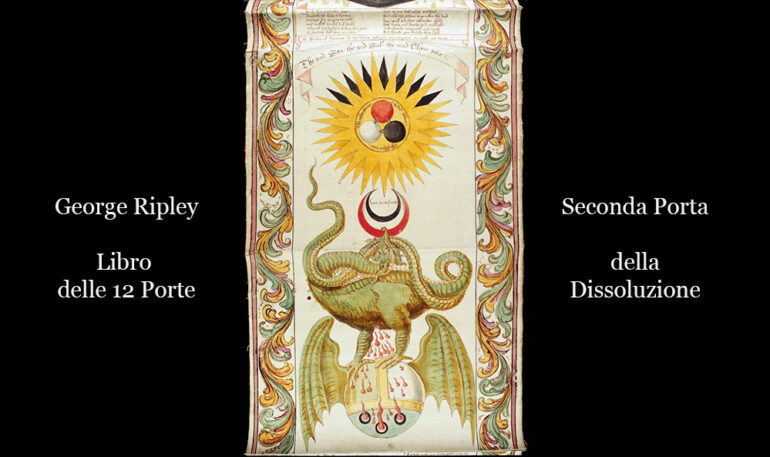 Seconda PortaLa dissoluzione fa apparire ciò che era nascosto prima alla vista, quindi con le virtù del nostro primo Mestruo, chiaro e brillante, il quale ha attenuato e sublimato le cose che erano specificate, prima che i Mestrui e i nostri Corpi siano sublimati dalla loro secchezza e dalla loro durezza compatta per essere naturalmente rimessi nella loro materia prima. Essi sono in genere uno, ma il numero non è più lo stesso. Così dunque il Sole ne è il padre e la Luna la madre ed il Mercurio è il mezzo. Questi tre e non parecchie sono le nostre Magnesie, il nostro Adrop e non altri, qui non c’è che fratello e sorella, come dire agente e paziente. Zolfo e Mercurio, co-essenziali nelle nostre intenzioni. [Entriamo qui nel regno di Hadès, la Magnesia, l’Adrop, sono nomi che utilizzano gli alchimisti per qualificare il loro Mercurio. G. Aurach, alchimista al quale dobbiamo le illustrazioni del Pretiosissimum Donum Dei ]. Così ha detto: la prima “che rappresenta un leone verde”, contiene la vera materia, così lo chiamano Adrop o Azoth, Atropum oh Duenech”. Dom Pernety dice che i Filosofi distinguono parecchi tipi di Leoni verdi. Quello di cui parliamo non corrisponde più alla prima definizione che dà Pernety [il sole o astro che illumina, nato secondo il mercurio comune]. In compenso concorda con la terza definizione che segue: “Con il terzo, si intende la dissoluzione stessa della loro materia, che chiamano anche Adrop. Con il quarto, questo Adrop o vetriolo di Azoth, chiamato Piombo dei Saggi. Con il quinto, il loro mestruo che puzza che Ripley, Raymond Lulle, Géber e tanti altri chiamano Spirito puzzolente, Spiritus foetens o Sangue del Leone verde…”. Notate dunque che, Adrop, vetriolo di Azoth e mestruo puzzolente sono termini simili. Il Sole e la Luna vengono usati anche come simboli degli Zolfi, non solo come, Diana ed Apollo. Il nome di Adrop è una delle denominazioni del Mercurio filosofico. Possiamo dunque essere più precisi di Pernety, quando ci dice che: “Adrop – Nome che i Filosofi Ermetici diedero alla materia che adoperano nella crescita dell’opera. Guido di Salgo, ha fatto un trattato che ha per titolo di Philosophico Adrop, inserito nel V tomo del Teatro Chymique” [Dizionario Mytho-Ermetico]. L’epiteto lucido, applicato all’Adrop significa brillante – Tra queste due qualità contrarie si è generato un mezzo ammirevole che è il nostro Mercurio e Mestruo untuoso, il nostro Zolfo segreto, che opera invisibilmente e brucia i Corpi con più violenza del fuoco, finché saranno sciolti in Acqua minerale: quella che chiamiamo Notte, a causa delle tenebre del Settentrione. [ La Notte è rievocata da Fulcanelli quando parla dello zolfo corporificato (i Misteri, p.138)]: “Su questo i saggi si basano, sapendo che il sangue minerale di cui avevano bisogno per animare il corpo fisso ed inerte dell’oro, era solamente una condensazione dello spirito universale, anima di ogni cosa. Questa condensazione in forma umida, capace di penetrare e rendere vegetativi i misti sub-lunari, si formava solo di notte, grazie alle tenebre del cielo limpido e dell’aria calma… Per tutti questi motivi messi insieme, i Saggi gli diedero il nome di rugiada di Maggio”. Abbiamo parlato della Notte nel commento dell’Introïtus (VI di Philalèthe). Per lo spirito universale, consultate: 1, 2, 3, 4, 5, 6, 7 – su quanto ha detto sulla natura nel suo dizionario Dom Pernety: “I Filosofi Ermetici non intendono con questi termini una sostanza immateriale, ma una sostanza estremamente tenue, sottile, penetrante, diffusa in tutti i misti, specificando ciascuno di essi secondo la sua natura, la sua qualità, ed il regno della Natura al quale appartiene. Riconoscono anche uno spirito universale fisico, igneo, diffuso in tutto l’universo, che vivifica con la sua azione continua senza mai interrompersi: gli danno il nome di Archée della Natura, e lo vedono come principio indeterminato di tutti gli individui. Talvolta i Chimisti Ermetici chiamano anche Spirito il loro mercurio, a causa della sua volatilità. Danno ancora questo nome alla loro materia giunta al bianco. Essi uniscono comunemente a questo Spirito un appellativo: Spirito fuggitivo – Nome che i Filosofi Ermetici hanno dato al loro mercurio, sebbene sia un corpo metallico. Essi chiamano ancora spirito tutto ciò che non è duro, compatto e solido; corpo: tutto ciò che forma un ammasso coagulato e fisso, di cui le parti sono difficili da dividere. Tutto ciò che è liquido ed alato è spirito, quando partecipa al mercurio comune. Tutto ciò che è compatto e fisso è corpo. Tali sono i metalli perfetti, i fissi degli imperfetti, il sale fisso dei tre regni. L’anima è il mezzo o il legame che lega il fisso ed il volatile”. Dom Pernety, crea ancora altre leghe, che in verità ci lasciano perplessi. Lo spirito universale può essere senza problema assimilato a un vetriolo, vale a dire essenzialmente a un acido. Lo identifica con l’acido carbonico dell’aria? Con l’acido nitroso che è fabbricato in un lampo ed entra nella composizione del nitro? È qui che siamo in disaccordo con Pernety, nella sua definizione dell’anima come mezzo, mentre si tratta dello Zolfo rosso. Il settentrione è la regione del grande Nord, quella dove si trova il cielo chimico, la costellazione dei sette buoi di labour che è la stella rivolta verso il polo Nord; così abitualmente definita in quanto fa parte dell’Orsa Maggiore. L’Aquilone, vento settentrionale, è la parte pendente di Zéphyre che appare nel testo di Philalèthe (Introïtus, VI). È Borée di cui parla tanto M. Maier che intitola così il suo I emblema a questo epigramma latino: “L’embrione che è chiuso nel ventre di Borée gonfio d’aria – dopo che sarà nato vivo in questa luce – Da solo può superare tutti i lavori degli eroi – Con l’arte, l’industria, la forza corporale e lo spirito. – Che non è Céson nato morto – Nacq