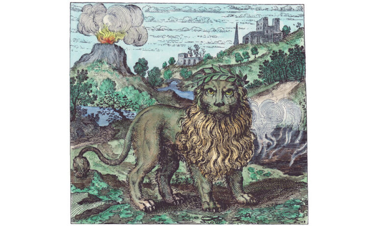 Nel medesimo dialogo Saturno definisce se stesso come il giudice perfetto del carcere in cui giace prigioniero lo Zolfo. Basilio Valentino ne “Le 12 chiavi della Filosofia” ci dà ancora un consiglio sulla preparazione dello Zolfo: “Colui che vorrà preparare il nostro zolfo incombustibile di tutti i saggi consideri dapprima in sé se sta cercando il nostro zolfo in ciò in cui esso è incombustibile. Ciò non può essere senza che il mare salato non abbia inghiottito il corpo e di nuovo l’abbia rigettato dal suo seno […] e perché non gli succeda nulla di funesto concedigli la volatilità dell’uccello quel tanto che è sufficiente. Allora il Gallo divorerà la Volpe[5], in seguito soffocherà nell’acqua e, risuscitato dal fuoco, sarà a sua volta divorato dalla Volpe così che il simile sarà riportato al simile”. Ricordiamo che in Alchimia si distinguono due Opere, una Lunare d’Argento o al Bianco, l’altra Solare, d’Oro o al Rosso. Flamel sostiene che per ciascuna delle due Opere è necessario uno zolfo di tipo diverso e che i due zolfi non devono essere mescolati tra loro, perché, altrimenti, genererebbero un essere mostruoso. Veniamo ora al “fuoco dei filosofi”, il misterioso agente che, regolato secondo diversi “regimi” nelle varie fasi dell’Opera, la porta a compimento. Nel “Libro Segreto dell’arte occulta della pietra dei Filosofi” Artefio distingue tre tipi di fuoco[6]: “Il primo – egli dice – è di lampada e continuo, umido, vaporoso, aereo, fatto ad arte per trovare, e la lampada deve essere proporzionata alla chiusura […]. Il secondo fuoco è delle ceneri nelle quali è chiuso il vaso sigillato ermeticamente o piuttosto è quel calore dolcissimo che, provenendo dal vapore temperato della lampada, avvolge in modo uguale il vaso. Esso non è violento se non viene eccessivamente eccitato, è digerente, è alterante, è preso da un corpo diverso della materia, è unico, umido e innaturale. Il Terzo è quel fuoco naturale nella nostra Acqua, la quale è anche chiamata contro natura perché è acqua e nondimeno dall’oro fa un puro spirito, cosa che il fuoco comune non può fare. È minerale, partecipa allo zolfo, dirompe, congela, scioglie e calcina tutte le cose, è penetrante, sottile, incomburente ed è la fonte d’acqua viva nella quale si lavano il Re e la Regina. Di esso abbiamo bisogno in tutta l’intera Opera, in principio, a metà e alla fine, mentre degli altri fuochi detti sopra no, ma solo qualche volta. Congiungi dunque questi tre fuochi nel leggere i libri dei filosofi e di certo non ti sfuggirà la loro comprensione dei fuochi”[7]. Quest’ultimo fuoco, chiamato anche “Bagno Maria”, “è un’acqua ignea e solforosa che compie in poco tempo quella generazione e maturazione dei metalli che il Sole produce in centinaia di anni nelle miniere della Terra”. Pontanus, nella sua “Epître du feu philosophique” lo dichiara indispensabile al compimento della prima, della seconda e della Terza Opera (come talvolta viene chiamata la moltiplicazione della Pietra) e ci dice che “non è un fuoco comune ma partecipa dello zolfo e rompe dissolve e congela tutte le cose”. È descritto come un piccolo fuoco di grande intensità, uguale e continuo, che ha il potere di convertire la materia prima nella Pietra del Filosofi, ma che non è in alcun modo tratto dalla stessa materia prima. Importante è, però, avverte Pontanus, conoscerne grado e proporzione. Limojon de Saint Didier (citato da Fulcanelli ne “Le Dimore Filosofali”) sostiene che “il fuoco naturale è un fuoco in potenza, che non brucia le mani, ma che dimostra la sua efficacia se è appena eccitato dal fuoco esterno”. Fulcanelli lo chiama scintilla vitale, fuoco potenziale, spirito racchiuso nella materia, raggio igneo tratto dal primo FIAT della creazione del mondo e dice che tale fuoco finisce anche col diventare lo stesso Vaso in cui l’Opera si compie[8]. Altrove lo stesso Fulcanelli dichiara che i gradi del fuoco dell’Opera sono quattro, di crescente intensità, ed aggiunge: “Nell’Opera Alchemica il fuoco non è quello ordinario […] quindi consigliamo vivamente di considerare come prima cosa il rapporto che i saggi hanno stabilito tra il fuoco e lo zolfo, affinché se ne possa ricavare quella nozione essenziale sui quattro gradi dell’uno che devono, senza fallo, corrispondere ai quattro gradi dell’altro; così in poche parole abbiamo detto anche troppo”. Parte seconda: Il Leone Nemeo e il Leone Verde“Sappi dunque che nessun vegetale né alcun frutto appare o germina senza che il Leone Verde si manifesti… È il fuoco contro natura che devi mirare a scoprire. È così detto perché è contrario alla Natura sfacendo e struggendo ciò che ella aveva composto con cura preziosa. Questo fuoco non s’alimenta con olio o spirito di vino, ma per mezzo d’una materia incombustibile, di durata e calore costanti, è un fuoco senza luce la cui combustione possiede grande virtù ed efficacia; trovarlo nelle tenebre, giacché non luce, non è piccola impresa, ed applicarlo convenientemente all’Opera è ancor più difficoltoso”. Michael Maier, “Atalanta Fugiens”, emblema 37° Il Leone è da sempre un animale fondamentale nel bestiario alchemico e, più in generale, nel simbolismo esoterico occidentale. Nel “Fisiologo” (un testo gnostico anonimo del II secolo D.C.) e nei bestiari medioevali vengono attribuite al Leone tre nature: • Cancella le proprie impronte con la coda quando è sulle montagne e sente l’odore dei cacciatori. • Quando dorme i suoi occhi vegliano. • La Leonessa genera i figli morti e li custodisce. Il terzo giorno il maschio li risuscita con il suo alito. In Egitto il Leone era considerato l’incarnazione della forza fecondatrice e procreatrice della Natura, comprendendo in sé sia la celeste luce del sole che le acque telluriche. Johann Jakob Bachofen [9] riferisce che nell’antico dialetto italico Caront