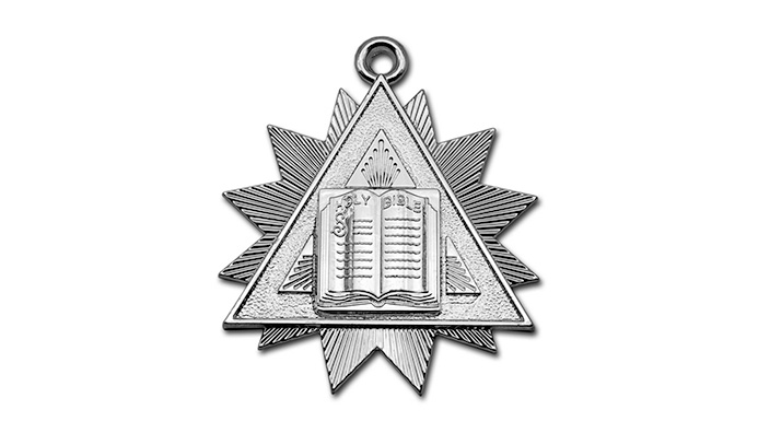 Il suo seggio è all’Oriente, di fronte e alla sinistra del Maestro [Venerabile]; il suo gioiello è una Bibbia aperta,appesa sul petto con una sciarpa bianca…