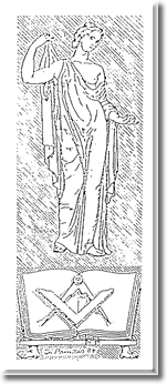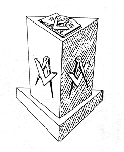 Il luogo chiuso e “coperto” nel quale si svolgono i Lavori si chiama Tempio. Il Tempio è una camera quadrilunga, la cui direzione è dall’Occidente all’Oriente, con un’unica porta d’ingresso a due battenti. Ai lati della porta del Tempio, vi sono due colonne: a destra una colonna corinzia con incisa sul fusto la lettera “J”, con sul capitello tre melagrane dischiuse; a sinistra una colonna dorica con incisa sul fusto la lettera “B”, con sul capitello un globo terraqueo. Sulla stessa parete, all’estrema destra la statua di Venere, e all’estrema sinistra la statua di Ercole. Tra la Colonna “J” e la statua di Venere, su un gradino è posto un seggio con un altare di forma triangolare su cui sono posti: un Maglietto, un lume ad una luce, una colonnina mobile di ordine corinzio, per il 2° Sorvegliante. Tra la Colonna “B” e la statua di Ercole, per il 1° Sorvegliante, il seggio è posto su due gradini con un altare triangolare sul quale sono: un Maglietto, un lume a due luci, una colonnina mobile di ordine ionico. Gli scanni dei Fratelli sono posti longitudinalmente, in doppia fila, lungo le pareti del Settentrione e del Meridione. Gli Apprendisti prendono posto nella prima fila della Colonna del Settentrione; i Compagni nella prima fila della Colonna del Meridione; i Maestri nelle seconde file delle due Colonne. Posti particolari sono assegnati ad altri Fratelli, secondo i vari incarichi in Loggia. Lungo le suddette pareti, sei per parte, sono disposte simmetricamente dodici colonne rappresentanti lo Zodiaco. La parte più importante del Tempio è l’Oriente, dove siede il Venerabile. Al centro della parete, dopo quattro gradini, vi è un podio rialzato, e dopo altri tre il trono del Venerabile, con davanti un’Ara triangolare sulla quale sono collocati: un Maglietto, un lume a tre luci, una colonnina dorica mobile. La copertura soprastante il trono è un baldacchino di velluto rosso con frange in oro; un po’ più in alto della spalliera del trono si vede un “Delta” in cui si legge a caratteri ebraici il nome del grande Architetto dell’Universo e poco più in alto il Sole e la Luna trasparenti. A destra del trono vi è la bandiera nazionale e la statua di Minerva; a sinistra il Labaro della Loggia. Ai lati del trono, sul podio, vi sono due tavoli: uno per l’Oratore a destra, ed uno a sinistra per il Segretario.