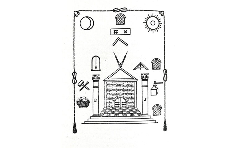 Intorno alle pareti del Tempio corre un cordone di colore rosso, appoggiato alle dodici colonne, formante sette nodi d’amore, che parte dal trono del Venerabile e le cui estremità terminano alle colonne “J” e “B”.