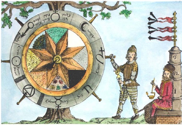 Acqua: uno dei quattro Elementi degli Antichi. Non ha nulla in comune con l’acqua volgare. Affinaggio: operazione con la quale si separa da un metallo tutto ciò che gli è estraneo. Si pratica particolarmente sull’oro e sull’argento. Alberi: un albero che porta delle lune significa il Piccolo Magistero, la Pietra al bianco. Se porta dei soli, è la Grande Opera, la Pietra al rosso. Se porta i simboli dei sette metalli o i segni del sole, della luna e 5 stelle, si tratta allora della materia unica da cui nascono i metalli. Albificazione: calcinazione al bianco o al rosso. Alludel: apparecchio composto di vasi sovrapposti e comunicanti tra loro per effettuare una sublimazione lenta. Amalgamazione: unione intima di diversi elementi metallici, in un tutto assai omogeneo e molto malleabile. Angelo: simbolizza la sublimazione, ascensione di un principio volatile come le figure del “Viatorium spagyricum”. Animali: in genere, quando ci si trova in presenza di due animali della stessa specie ma di sesso differente, come leone e leonessa, cane e cagna, stanno a significare lo Zolfo ed il Mercurio preparati in vista dell’opera, o ancora il fisso ed il volatile. Il maschio rappresenta allora il fisso, lo Zolfo, e la femmina il volatile, il Mercurio. Uniti, gli animali esprimono il congiungimento, le nozze, il matrimonio. Se si combattono: fissazione del volatile o volatilizzazione del fisso. Come nelle figure di Basilio Valentino, “Le Dodici Chiavi della Filosofia”. Gli animali possono simboleggiare inoltre gli Elementi: Terra (leone o toro), Aria (aquila), Acqua (pesci, balena), Fuoco (dragone, salamandra). Se un’animale terrestre figura in un’immagine ermetica con un animale aereo, essi significano rispettivamente il fisso ed il volatile. Apollo: il sole, l’oro. Aquila: simbolo della volatilizzazione ed anche degli acidi impiegati nell’Opera. Un’aquila che divora un leone, significa la volatilizzazione del fisso per mezzo del volatile. Due aquile che si combattono hanno lo stesso significato. Argento dei Saggi: il Mercurio dei filosofi. Aria: uno dei quattro Elementi degli Antichi. Non ha rapporto con quella che respiriamo. Athanor: forno a riverbero. Bagno: simbolo della dissoluzione dell’oro e dell’argento, della purificazione di questi due metalli. Bagnomaria: apparecchio disposto in modo che il vaso contenente la materia, sia immerso nell’acqua calda. Bianco: Pietra al Bianco, pietra ancora imperfetta, di cui tutte le possibilità trasmutatorie non sono ancora sviluppate od ottenute. Calcinazione: riduzione dei corpi in calce; può essere secca o umida. Caldo: una delle quattro qualità elementari della Natura. Camera: simbolo dell’Uovo Filosofico, quando il Re e la Regina vi sono rinchiusi (Zolfo e Mercurio). Cane: simbolo dello Zolfo, dell’Oro. Il cane divorato da un lupo, significa la purificazione dell’Oro per l’antimonio. Cane e cagna associati significano il fisso ed il volatile. Caos: simbolo dell’Unità della Materia ed anche del colore nero, “Primo stadio dell’Opera”, della putrefazione. Capitello: cavità di vetro munita di becco, che si adatta al collo della cucurbita per poter distillare gli spiriti minerali. Capitello, cappa, alambicco, sono pressappoco la stessa cosa. Cementazione: operazione con la quale per mezzo di polveri minerali, che si chiamano cemento, si purificano i metalli al punto che non vi resti più che la purissima sostanza metallica. Cigno: simbolo dell’Opera al Bianco, secondo stadio dopo la putrefazione e l’iridescenza. Quest’ ultima non figura nel ternario classico della Grande Opera, nero, rosso, bianco. Circolatorio: vedi Pellicano. Circolazione: consiste nel far circolare i liquidi in un vaso chiuso per effetto d’ un calore lento. Circonferenza: Unità della Materia, Armonica Universale. Cucurbita: vaso a forma di zucca aperta in alto, che si copre con un capitello per la distillazione dei vegetali o altre materie. Coobazione: azione di rimettere lo spirito metallico distillato, sul suo residuo. Corona: simbolo della regalità chimica, della perfezione metallica. Ne “la Margharita Preciosa” i sei metalli sono prima presentati come schiavi, con la testa nuda ai piedi del Re, l’Oro. Ma poi, dopo la Trasmutazione essi sono figurati con una corona in testa. Da cui, nell’Alchimia Spirituale, la frase di L.C. de Saint Martin: “Ogni uomo è il suo proprio Re”, cioè ogni uomo porta in sé la possibilità del ritorno alla sua regalità perduta, nel piano spirituale ed angelico. Corvo: Uno dei primi stadi dell’Opera, la putrefazione. Crisopea: La Pietra Filosofale, la Grande Opera realizzata. Crogiolo: vaso di terra refrattaria svasato verso l’alto, destinato alla fusione dei metalli o dei corpi duri. Decrepitazione: azione di scaldare il sale comune in un crogiuolo per scacciarne l’umidità. Deflegmare: consiste nel separare l’acqua contenuta nei corpi (o flema ), per evaporazione o distillazione. Diana: vedi luna. Digestione: disaggregazione, involuzione e maturazione della materia, ottenuta esponendo il vaso contenente al calore del bagnomaria, per un tempo conveniente. Distillazione: operazione durante la quale si separano le parti sottili dei corpi solidi e liquidi, o ancora lo spirito della materia, che l’invischiano. Dragone: un dragone che si morde la coda, l’Unità della Materia. Un dragone nelle fiamme, il simbolo del Fuoco. Parecchi dragoni che si combattono, la putrefazione. Dragone senza ali, il Fisso. Dragone alato, il Volatile. Ermafrodito: il risultato della congiunzione dello Zolfo con il Mercurio, chiamato anche Rebis. Falce: simbolo del Fuoco. Fenice: simbolo del colore rosso dell’Opera. l’ Uovo della Fenice è l’uovo filosofico. La Fenice è anche lo Zolfo ed il Mercurio dei Saggi, uniti e congiunti al termine ultimo dell’Opera. Fiori: rappresentano i colori nel corso dell’Opera. Fisso: Zolfo metallico o cane di Corascene. Fontana: tre fontane rappresentano