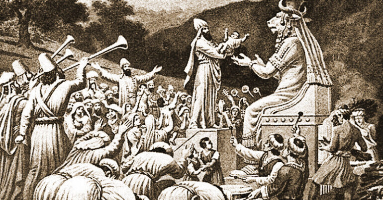 Traduzione dall’originale francese a cura della Redazione di Esonet I Sacrifici «a Moloch»Le citazioni a Geremia ci introducono ai sacrifici «a Moloch», che ho tenuto in serbo sin qui. Essi pongono in effetti un problema particolare, che è stato molto discusso di recente e che era d’interesse distinguere dal problema generale dei sacrifici umani. 1. I testi biblici.Il nome «Moloch» deriva, tramite la Vulgata, dalle traduzioni greche che trascrivevano così l’ebraico molèk. Questa parola viene ripetuta cinque volte nella Legge di Santità, che proibisce il sacrificio di un figlio a Moloch, Lev ., XVIII, 21, e che punisce con la morte, Lev ., XX, 2-5. Ricompare in Ger ., XXXII, 35 (1), e ne II Re , XXIII, 10: Giosia dichiarò immondo il Tofet nella valle di Ben-Innom, perché nessuno vi facesse passare ancora il proprio figlio o la propria figlia per il fuoco in onore di Moloch. Lo stesso nome si deve leggere in Is ., XXX, 33 al posto di mèlèk. Per contro nel I Re , XI, 7, secondo il contesto e le versioni, occorre modificare molèk in Milkom, il dio nazionale degli Ammoniti. Il testo più esplicito, il II Re , XXIII, 10, consente di trovare dei riferimenti allo stesso culto nel II Re , XVI, 3; XVII, 31; XXI, 6; Ger ., VII, 31; XIX, 5; Deut ., XII, 31; XVIII, 10; Ez ., XVI, 21; XX, 31; XXIII, 37 (figli e figlie bruciati in sacrificio), probabilmente in Ger ., II, 23 (la valle è quella di Ben-Innom), Ger ., III, 24 e Ps ., CVI, 37-38 ( figli e figlie offerti agli idoli). Secondo il Deut ., XII, 31 e XVIII, 10, gli Israeliti devono fare attenzione ad un’unica usanza pagana; il II Re , XVII, 31 accusa di questa pratica i coloni di Sefarvaim insediati dagli Assiri nell’antico regno della Samaria; Is ., XXX, 33 paragona a questo sacrificio il castigo che minaccia l’Assiria. Tutti gli altri testi testimoniano che il rito è stato realmente praticato dagli israeliti. I più espliciti indicano come luogo di questo culto la valle di Ben- Innom, la Geenna, situata immediatamente a sud di Gerusalemme, in cui si trovava il tofet, «un bruciatore», (2) brevemente descritto in Is ., XXX, 33. Sembra proprio che questo culto non sia stato praticato altrove: anche gli unici due riferimenti storici, II Re , XVI, 3 e XXI, 6, ci conducono a Gerusalemme; Ez ., XXIII, 37-39 ammette che questi sacrifici erano offerti fuori dal santuario ma nelle sue vicinanze, e si capisce perché la Legge di Santità li condanni così duramente, Lev ., XVIII, 21; XX, 2-5, poiché è opera dei preti di Gerusalemme i quali dal Tempio riuscivano a vedere salire il fumo del tofet. Ben circoscritta dal punto di vista geografico, questa pratica è anche limitata nel tempo. Né il sacrificio previsto per Isacco, né la morte dei figli di Chiel a Gerico ( se di sacrificio si tratta), né l’olocausto della figlia di Jephté o quello del figlio di Mesa sono, stando a ciò che si dice, dei sacrifici di questo genere. Il primo bambino di cui abbiamo notizia che sia stato «fatto passare sul fuoco» è il figlio di Achaz, II Re , XVI, 3, il primo riferimento al tofet si trova in Is ., XXX, 33, in un oracolo pronunciato in cui Sennachérib minacciava Gerusalemme. La riforma di Giosia portò all’abolizione di quel culto, II Re , XXIII, 10, ma esso rinacque, sembra con maggior vigore, dopo il fallimento della riforma: la Legge di Santità è stata compilata probabilmente tra la promulgazione del Deuteronomio e l’Esilio, il contenuto di Ger ., VII, è ricondotto al regno di Joiaqim dalla maggior parte dei commentatori, le profezie di Ezechiele in cui tale culto viene menzionato riflettono la situazione religiosa in Giudea alla vigilia della rovina di Gerusalemme. In seguito non si parla più dei sacrifici a Moloch. (3) Il giudizio della Bibbia nei confronti dei sacrifici è inequivocabile: essi sono sempre condannati, sia dal Deuteronomio o dal redattore deuteronomista dei Re, dai redattori sacerdotali del Levitico e dai Profeti. Sono condannati come contrari alla volontà del Signore, Ger ., VII, 31 e paralleli, o come offerti agli idoli, Ger ., II, 23; III, 24; XIX, 5; Ez ., XVI, 20-21; XX, 31; Ps ., CVI, 37-38, come emuli delle nazioni che Dio ha privato della Terra Santa, Deut ., XII, 29-31; XVIII, 10; II Re , XVI, 3; XXI, 2 e 6. La Bibbia dunque considera i sacrifici a Moloch come una pratica illegittima che ha imperversato a Gerusalemme dalla fine dell’VIII secolo all’inizio del VI secolo, sotto l’influenza dei culti cananei. Noi giustificheremo questo giudizio e ne preciseremo l’origine. 2. I sacrifici molk nei paesi cartaginesi. (4)Un certo numero di iscrizioni puniche e neopuniche dell’Africa del Nord, incise su delle steli che commemoravano un sacrificio, contengono la parola mlk , da sola o in alcune espressioni di cui le più rilevanti sono mlk’mr e mlk’dm . Queste iscrizioni risalgono grossomodo dal IV al I secolo avanti Cristo. Le steli sono dedicate a Baal Hammon e alla sua congiunta Tanit. Alcune sono state ritrovate a Cartagine, a Guelfa e Scusse, ma le più numerose provengono da El-Hofra, nei pressi di Costantina. (5) L’espressione mlk’mr si incontra solo quattro volte nelle iscrizioni dell’Africa del Nord. L’interpretazione è rimasta abbastanza incerta fino alla scoperta nel 1930 a N’Gaous, a 125 chilometri da Costantina, di diverse steli analoghe ma recanti un’iscrizione in latino. (6) Esse risalgono alla fine del II secolo o inizio del III secolo della nostra era e sono dedicate a Saturno che, nell’Africa latinizzata, era l’equivalente di Baal Hammon. Il sacrificio offerto è definito molchmor , che è evidentemente la trascrizione di mlk’mr . (7) [….pagine mancanti ….] In punico molk è un termine rituale usato per i sacrifici di bambini, per i quali si accettava la possibilità di sostituirli con una vittima animale. Sui sacrifici di bambini a Cartagine abbiamo numerose testimonianze letterarie, in greco e latino. Quasi tutti li collegano al culto di Satu
