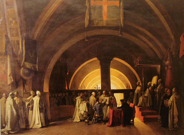 Nella cosiddetta Era Volgare, l’Ordine Templare fu l’ultimo degli ordinamenti iniziatici d’occidente a fondere segretamente la propria cultura con quella dei Fratelli d’oriente. Avvenne in terra di Palestina dove, se pur con scopi diversi e con diverse ragioni politiche, la sua Milizia operava in concomitanza con le truppe crociate e con i cavalieri di S.Giovanni dell’isola di Rodi. Bernardo da Chiaravalle (1090 – 1153) creatore della Regola Templare, restauratore dell’Ordine cistercense ed autore del motto “Salve caput cruentatum”, estese la sua protezione e quella dell’Ordine che rappresentava ai Rabbi (i sacerdoti ebraici) più illuminati che vivevano sotto il giogo del potere temporale e religioso d’Europa nelle Comunità Ebraiche di Spagna, Francia, Germania ed Italia, perché contribuissero a sciogliere i misteri che si celavano nei molti documenti raccolti a Gerusalemme dai “suoi” frati-combattenti, e ricevuti per le segrete alleanze ch’essi ebbero con alti esponenti della cavalleria dell’Islam. La documentazione storica trasmette il ricordo di una costruzione, fatta da “Saggio Hakem”, dove ebbero luogo i loro incontri sin dall’anno 1100. L’Alta Gerarchia Templare non concesse mai i propri segreti, politici ed iniziatici, al di fuori delle proprie Commende e dei propri Templi; e nei suoi tre anni di prigionia nelle segrete di Francia, gli ultimi della sua vita, il Gran Maestro dell’Ordine, Jacques de Molay, ebbe il tempo di costituire con la copertura di fratelli minori dell’Ordine (i frati e gli operai costruttori dei Templi, i Frati Massoni), quattro nuclei di Dignitari ed Ufficiali del Tempio, in Scozia, in Francia, in Germania ed infine in Italia, che in seguito costituirono la parte esoterica della Massoneria. Era l’anno 1313. Seguendo gli ultimi ordini del Gran Maestro, un gruppo di templari, composto da sette iniziati ai segreti dell’Ordine, i cavalieri: Gaston de la Pierre Phoebus, Guidon de Montanor, Gentili da Foligno, Henrì de Montfort, Luis de Grimoard, Pierre Yorick de Rivault, Cesar Minvielle, con altri quindici, raggiunsero l’isola di Mull in Scozia, dove li attendevano altri confratelli. In quell’isola, il 24 Giugno 1313, il Cav. Aumonte, venne nominato dall’assemblea Reggente del Gran Maestro. Il templare Guy de Montanor, dottore in alchimia, 7° grado della gerarchia iniziatica e discepolo del Gran Maestro, fondò con altri iniziati, nel segreto della fratellanza, la Chiesa Templare, per perpetuare gli insegnamenti loro trasmessi. Il loro emblema era un pellicano sormontato da un cappello cardinalizio e sotto di lui sei ghiande con il motto: “Dium sibi caeteris”. Nell’ottobre dell’anno 1316 quattro templari, iniziati al Segreto dei Segreti (il Real Segreto), Guy de Montanor, Gaston de la Pierre Phoebus, Pietro il Buono di Lombardia, Riccardo l’Inglese più altri 24 confratelli, tutti appartenenti alla Chiesa Templare, rientrarono in Francia ch’era sotto la sovranità di re Filippo V, dove chiesero udienza a Jaques d’Euse (in italiano Giacomo d’Ossa) eletto papa d’Avignone con il nome di Giovanni XXII. L’incontro fu subito concesso ed avvenne il 17 novembre dello stesso anno. Da quell’incontro scaturì, per quei frati-combattenti, l’assicurazione di una “totale protezione” del papa, ed il progetto d’una Regola per un nuovo Ordine, i cui appartenenti si sarebbero chiamati i Frati Maggiori della RosaCroce. Quella compagine cavalleresca fu sottoposta a dure perdite da un turbolento e tragico viaggio presso i confratelli in terra d’Inghilterra, mentre garante della Regola presso il papato restava, in terra di Francia, un anziano templare, allora Rettore degli Ospitalieri in Pont-Saint-Esprit. Il punto d’accordo tra le due parti fu sostanzialmente lo sviluppo e la trasmissione del potere dell’arte alchemica che i templari riuscirono a dimostrare di possedere. D’altronde con il possesso di quel “potere”, l’esistenza d’una Chiesa Templare separata ed autonoma dalla Chiesa Madre, doveva politicamente preoccupare non poco il nuovo papa; in perenne conflitto per mantenere il proprio predominio e la propria autonomia sui territori europei polverizzati dai conflitti delle varie fazioni monarchiche o imperiali, in perenne opposizione tra loro e per le quali, al contrario di quanto cantavano i menestrelli ed i poeti di corte, più che il valore delle armi contava il potere delle finanze. Sempre ad Avignone, il 5 gennaio dell’anno 1317 fu concessa ai Frati Maggiori la Regola dell’Ordine, con una sola imposizione; alla guida dei 33 componenti del Sacro Collegio venne insediato il cardinale J. Lavie de Villemur (in italiano Giacomo di Via), nipote del papa. Costui, come ci trasmette la storia, sfortunatamente morì per intossicazione da cibo, il 6 maggio dello stesso anno. Alla morte del cardinale, il S. Collegio dei Frati Maggiori, che la Regola designava in numero di 33 (gli anni del Cristo) introdusse al suo posto un altro templare, il cav. provenzale Enguerard de Ners, e con questi elessero il loro nuovo vertice. L’Ordine, sfuggito ormai al controllo diretto del papa, lasciando Avignone, si trasferì nell’anno 1333 alla Commenda di Monfort sur Argens per “organizzare” da lì, il proprio destino. Rimasero in quel luogo per un anno, per poi lasciarlo dopo una messa solenne e con l’impartire a tutti i presenti la Comunione Mistica, per iniziare così nell’invisibilità, quello che sarà poi chiamato “il mito dei Rosa+Croce”. Da allora, pur continuando segretamente ad istruire proseliti, nessun templare si è mai più dichiarato pubblicamente tale. Oggi, l’Iniziato occidentale che fosse riconosciuto ed accettato per tale dalla Confraternita, otterrebbe l’accesso agli archivi storici ma non pubblici delle sedi più prossime all’Europa (non includendo l’estremo oriente, sempre interessato alle vicende dei proseliti occidentali): le Comunioni Sufi del Cairo, 
