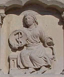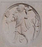 Fig. 3 e 4 Possiamo riprendere allora il nostro discorso: la colomba è la discesa di ciò che abbiamo chiamato Spirito, Grazia, o «raggi del Sole invisibile», che si unisce alla materia e al corpo volgare. L’immagine allude anche al fatto che, quando si dispone di quella «rugiada celeste» o nostoc e lo si vuole unire a una particolare materia utile per l’Opera, si va incontro a seri problemi. Per la verità l’alchimista deve sobbarcarsi due fatiche distinte: separare lo spirito dal corpo «volgare» a cui si è legato spontaneamente e poi unirlo al «corpo filosofico» che gli servirà per l’Opera. Le resistenze che incontrerà saranno quindi di due ordini: 1) separare il cavallo-spirito dal cavaliere-corpo 2) unire il cavallo-spirito col cavaliere-corpo-segreto. Sia nel separare che nell’unire si incontreranno difficoltà: prima la resistenza del cavaliere a separarsi dal cavallo, quindi la resistenza del cavallo ad unirsi a un nuovo cavaliere… * * * Toro«… Mi ricordai di una storia che in tempi antichi avevo sentito raccontare da alcuni mercanti, viaggiatori e viandanti e cioè che nelle montagne della Pietra di Diamante avvenivano cose spaventose e terrorizzanti né alcuno poteva porvi piede, ma che i mercanti che commerciavano in diamanti facevano uso di uno stratagemma per averli: prendevano una pecora, la scannavano, la scuoiavano, ne tagliavano la carne a pezzi e la buttavano dall’alto del monte nella valle: la pecora cadeva mentre la carne era ancora fresca e vi si attaccavano alcune di quelle pietre ma i mercanti la lasciavano fino a metà del giorno, quando cioè aquile ed avvoltoi calavano per prenderla, la afferravano nei loro artigli e volavano via verso la cima del monte. I mercanti allora si facevano addosso agli uccelli emettendo grida ed essi lasciavano stare la carne volando via. Allora i mercanti si avvicinavano alla carne e ne liberavano le pietre che vi si erano appiccicate, lasciandola poi agli uccelli rapaci ed alle bestie feroci e portando via le pietre ai loro paesi. Nessuno poteva giungere ad avere i diamanti se non con questo stratagemma.» Le mille e una notte – I viaggi di Sindibàd Molti dei culti che hanno preceduto la nostra era erano caratterizzati dalla divinizzazione o dal sacrificio di un toro. Così il culto di Mithra (questo culto, profondamente legato all’astrologia, era talmente diffuso nell’impero romano fino al II sec. D.C. che Ernest Renan affermava che, se se non fosse mai nato il cristianesimo, l’umanità sarebbe stata mitraica), il culto di Attis e Cibele, il culto di Osiride, il culto di Dioniso (che era anche invocato come axie taure, sacro toro), e all’uccisione di un toro era anche legata la leggenda cretese del Labirinto e del Minotauro [7]. Si vedono spesso davanti ai templi e alle chiese due colonne sormontate rispettivamente da un toro e da un leone. Prima ancora che riferirsi a due dei quattro evangelisti, le colonne in questione simboleggiano le due colonne che sorreggevano l’entrata al tempio di re Salomone, Joakim e Boaz. La colonna Joakim veniva riferita al Toro, alla Luna, alla Stabilità, mentre la colonna Boaz al Sole, al Leone, alla Forza. Avremo ancora modo di parlare delle colonne Joakim e Boaz in relazione alla seconda serie di sei coppie di bassorilievi, collegati ai segni che vanno dalla Bilancia ai Pesci. Per ora limitiamoci ad osservare che una delle idee da collegare al segno del Toro è quella di stabilità. In effetti in questo periodo dell’anno la luce, l’energia vitale, che hanno fatto irruzione sulla Terra nel segno dell’Ariete sembrano legarsi indissolubilmente alla materia rendendola più splendente, il conflitto tra spirito e materia che avevamo osservato nel segno dell’Ariete sembra sedato, lo spirito saldamente insediato negli involucri prescelti per manifestarsi. È quindi la parte dello zodiaco più indicata per esprimere l’attaccamento a ciò che abbiamo acquisito, al nostro corpo, alla nostra identità, alle cose che abbiamo appreso, a ciò che possediamo. Insomma, tutto ciò che uno psicanalista chiamerebbe “la forza delle identificazioni”. Tuttavia, con riferimento a quanto detto in Ariete, nel caso in cui questa acquisizione dello spirito da parte della materia sia stata messa in dubbio dall’alchimista per poter riunire lo spirito ad un altro Soggetto Filosofico, il segno del Toro segnerà invece l’estremo sacrificio di sé. Per ciò che riguarda l’abbandono delle identificazioni, occorre una disponibilità a sacrificare, letteralmente a “rendere sacra” l’energia che abbiamo messo nelle cose che amiamo, separando ogni proiezione, ogni identificazione dal suo oggetto materiale, andando incontro a una vera e propria “perdita di sé stessi”, una rinuncia a tutto ciò che puntella l’identità. Per ciò che riguarda il lavoro dell’alchimista si tratta, tra Ariete e Toro, di separare quel “raggio del Sole invisibile” di cui abbiamo parlato dal suo involucro “volgare”, per poi unirlo saldamente al corpo che gli è destinato. Al sacrificio compiuto corrisponde certamente una preziosa acquisizione per l’alchimista: egli ora dispone di un magnete che può attrarre a sé quello zolfo che era stato liberato nella prima operazione, che va unito a un nuovo corpo, ha preso coscienza del lavoro necessario per estrarre il Sale dei Filosofi. Chissà che negli antichi Misteri il sacrificio rituale del toro non avesse proprio questo significato: abbandonare tutte le identificazioni legate al corpo e all’identità profana e rinascere a un nuovo status. Nel mitraismo si credeva anche che tutte le ricchezze della terra fossero state originate dal sangue del toro celeste sacrificato dal dio Mithra, che avrebbe fecondato il suolo. Vediamo ora cosa ci dice in proposito la seconda coppia di bassorilievi (cfr. fig. 5 e 6).